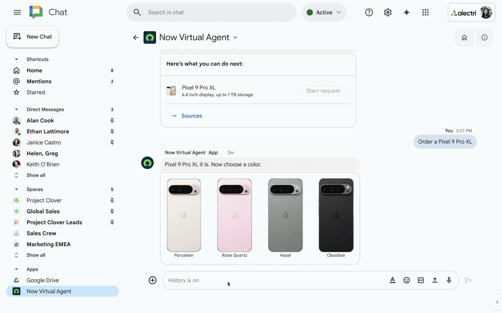 - ผู้ใช้สามารถโต้ตอบกับ Virtual Agent ของ ServiceNow ได้โดยตรงภายใน Google Chat