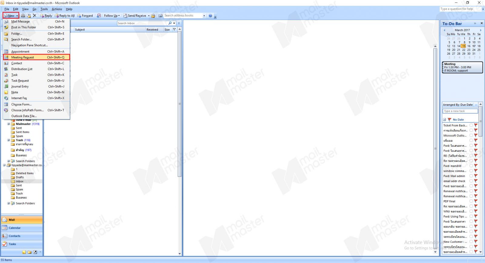 1. กดที่ “New” จากนั้นเลือก “Meeting Request”