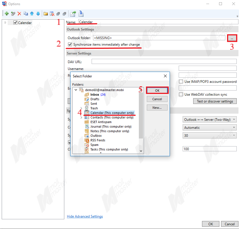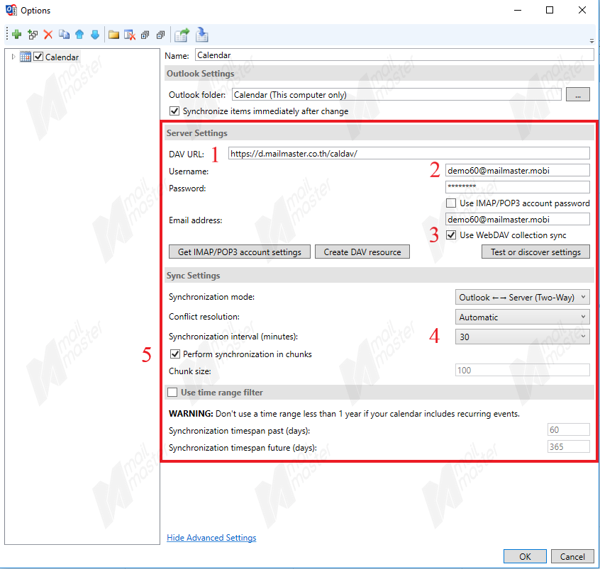 5.1 กรอก DAV URL “ https://d.mailmaster.co.th/caldav/ ”