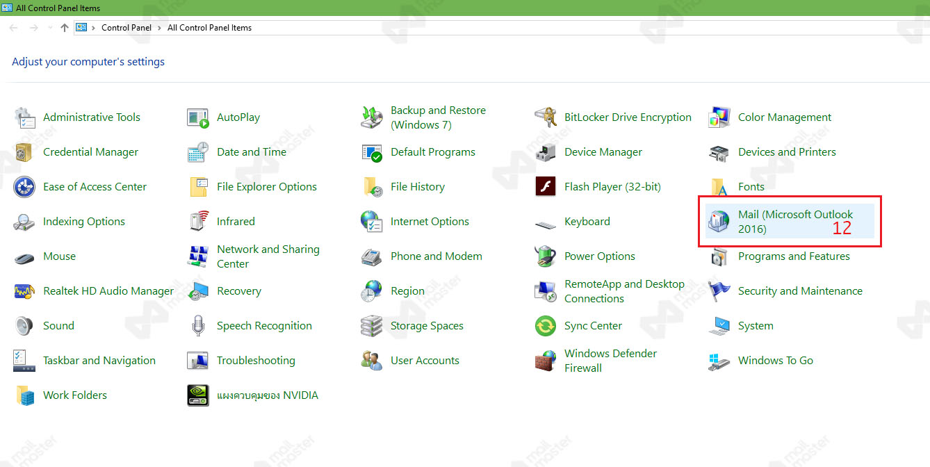 12. กลับมาหน้า Control Panel >> เลือก " Mail (Microsoft Outlook) "